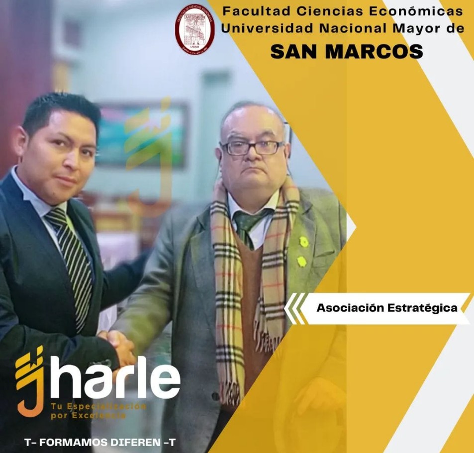 En la actualidad las organizaciones públicas y privadas suelen dar mayor oportunidad a las especializaciones desarrolladas por universidades de mayor prestigio, es por ello que nuestro Centro de Especialización: Jharle T- FORMAMOS DIFEREN -T cuenta con una Asociación Estratégica (N°: 054-V-CERSEU-FCE-2021) con la Facultad de Ciencias Económicas de la Universidad Nacional Mayor de San Marcos, asimismo, somos asociados a la Cámara de Comercio de Lima con el código de registro: 00054587.7, esto nos convierte en el Top Ten de los mejores centros de formación continua del país, basado por experiencias reales sobre un hecho demostrado bajo el testimonio de miles de participantes que se especializaron en nuestra representada, promoviendo nuestros valores y nuestro código de honor.
